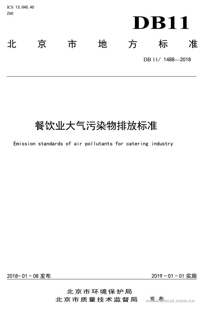 隨著社會經濟的發(fā)展和居民生活水平的提高,北京市餐飲業(yè)發(fā)展迅速,餐飲企業(yè)數量不斷增加、規(guī)模不斷擴大,餐飲業(yè)在烹飪過程中所產生的污染物排放也在不斷增加。為控制北京市餐飲業(yè)的大氣污染物排放,改善城市區(qū)域環(huán)境質量,引導和促進餐飲業(yè)污染治理技術進步,2018年1月8日,北京市制定并發(fā)布《餐飲業(yè)大氣污染物排放標準》(DB11/ 1488-2018)(以下簡稱“標準”)。